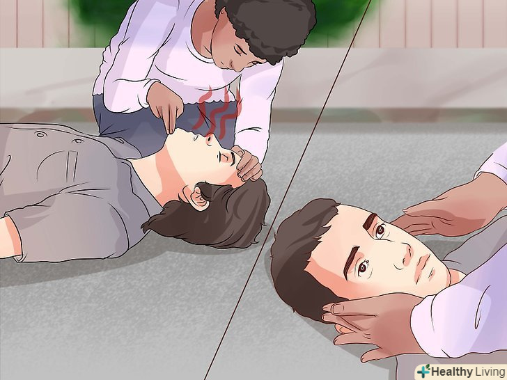 Слідкуйте за симптомами шоку.велика втрата крові призведе до того, що людина може впасти в шок. Шок може бути смертельним, оскільки через порушення кровообігу в органи не надходить кров і кисень.[5]- До симптомів шоку відносяться: блідість, холодна і липка шкіра, швидке і прискорене дихання, блювота, позіхання і зітхання, а також спрага.