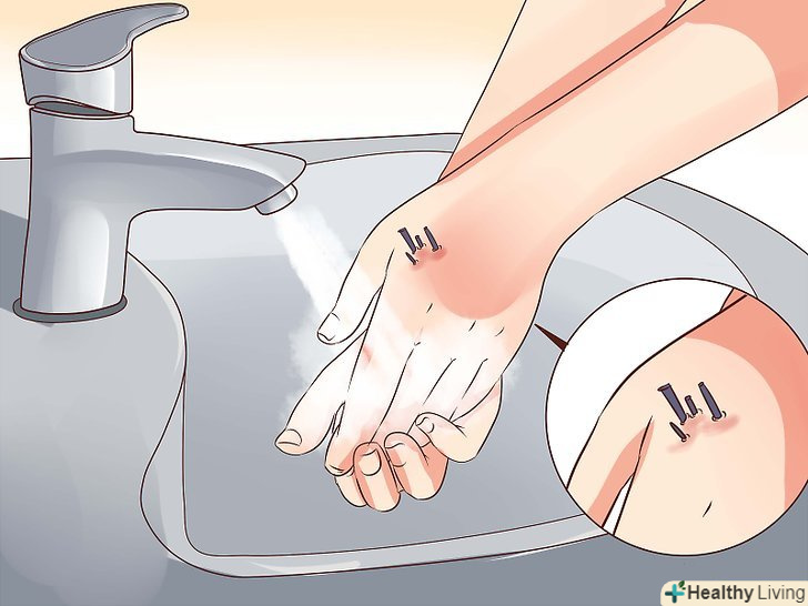 Після того, як предмет буде видалений, знову промийте рану.прочистіть місце, в якому був предмет. Промийте рану під проточною водою і обережно вимийте її з милом.- Огляньте рану, щоб переконатися, що в ній більше не залишилося сторонніх предметів.