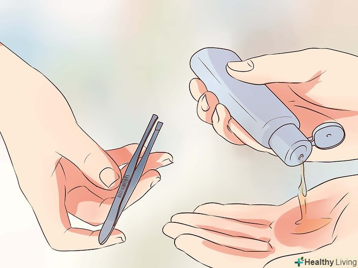 Простерилизуйте пінцет.це можна зробити, протерши його спиртом. Після цього спирт відразу випарується.[9]- Спирт не потрібно змивати водою.