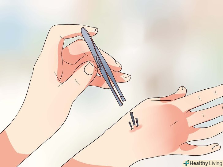 Схопіться за предмет пінцетом.обережно витягніть його тим же шляхом, яким він увійшов в шкіру. Тягніть міцно, але обережно.- Не робіть різких рухів і не крутите предмет. Цим ви лише ще більше збільшите рану.