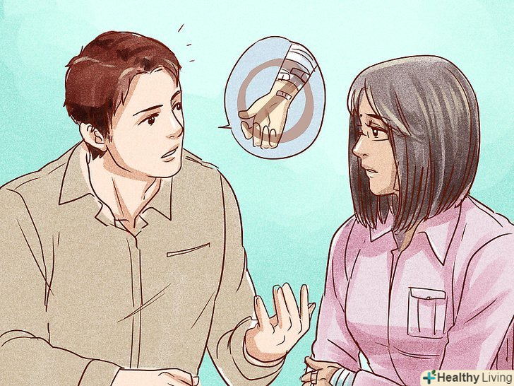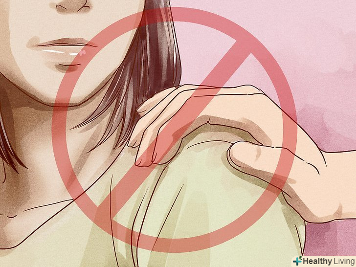 Поважайте його простір.уникайте надмірно ласкавого або зворушливого поведінки, особливо якщо ви чоловік, який допомагає подрузі. Багато людей, які завдають собі каліцтва стали жертвами насильства і їм важко довіряти людям. Заспокойте його любов'ю, хоча надмірна наполегливість може поставити людину в незручну ситуацію. Бути ласкавим нормально, якщо вам обом так комфортно.