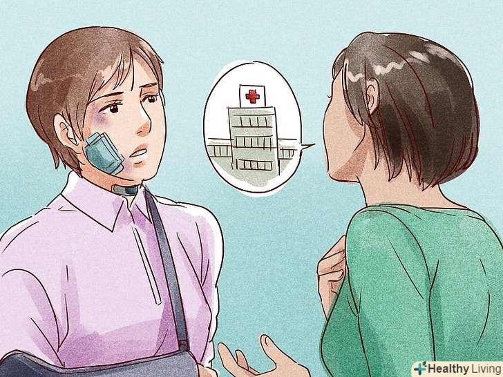 Якщо він потребує медичної допомоги, то запропонуйте піти з ним. Говоріть повільно і спокійно. Багато фахівців в галузі охорони здоров'я можуть вести себе грубо і відчувати огиду до людей, які самостійно завдали собі травми. Зазвичай це негативна поведінка спровоковано відсутністю інформації.