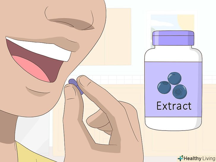 Приймайте екстракт чорниці. екстракт чорниці містить антоціанозиди-потужні антиоксиданти які зменшують синяк, стабілізуючи колаген і зміцнюючи капіляри. Ви можете придбати екстракт чорниці в таблетках у більшості аптек, де продаються харчові добавки.