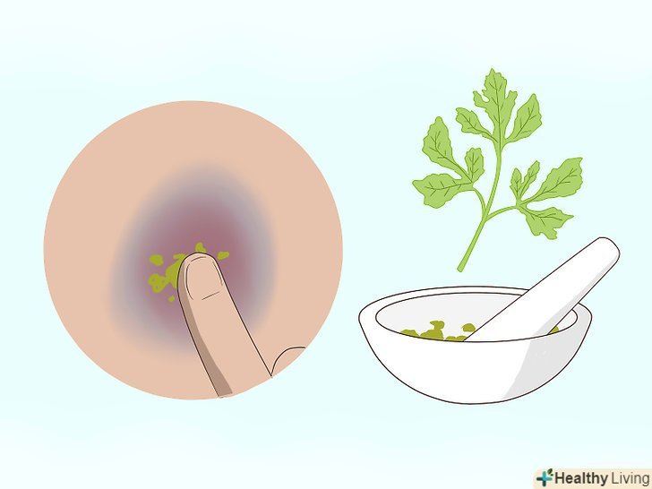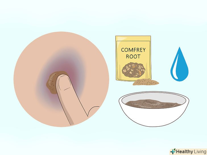 Приготуйте пасту з кореня живокосту.подрібніть корінь живокосту і додайте трохи води, щоб утворилася паста, або змочіть ватний тампон в лікарському чаї з кореня живокосту. Наносите пасту або ватний тампон на місце удару один раз в день, поки синяк не зникне.