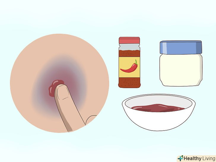 Змішайте кайенский перець з вазеліном.намажте отриманою сумішшю пошкоджену поверхню і залиште на кілька годин. Потім просто витріть серветкою. Наносите цей засіб один раз в день, поки синяк не зникне.