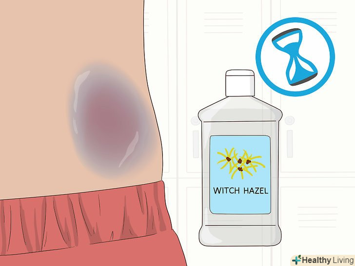Нанесіть на синяк масло гамамелісу.Гамамеліс допоможе прискорити процес загоєння, також він відомий тим, що знімає запалення. Нанесіть масло на синяк і залиште на кілька годин. Наносите масло щодня, поки синяк не зникне.