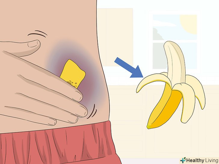 Приймайте добавки бромелаїну, щоб прискорити загоєння.щоб синяк пройшов швидше, приймайте 200-400 мг бромелаїну (ферменту, одержуваного з ананаса) до 3 разів на день.[1]- Щоб синяк не став ще помітніше, деяких добавок краще уникати. Риб'ячий жир, жирні кислоти омега-3, часник, Вітамін Е, гінкго білоба підсилюють утворення синців. Тому не приймайте їх, поки ваш синець не пройде.[2]