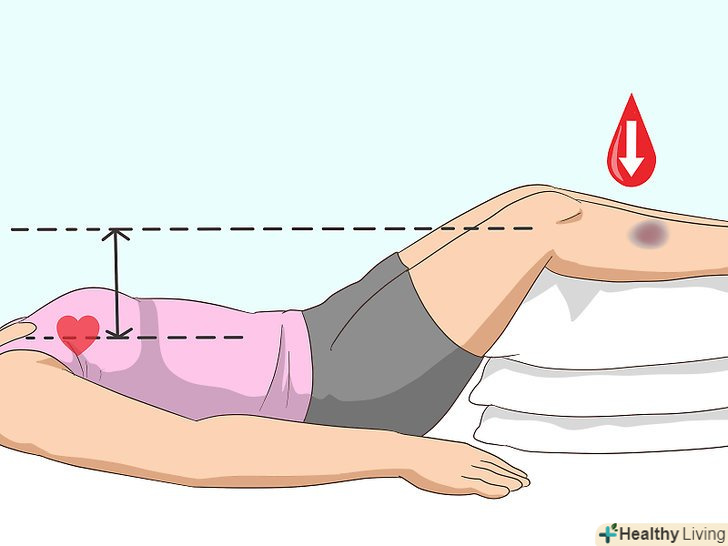 Підніміть місце синяка.якщо синяк з'явився на руці або нозі, обов'язково підніміть її над рівнем серця. Таким чином ви зменшите набряк і приплив крові до синця, а значить, він не стане ще помітніше. Найкраще цей спосіб допомагає відразу після того, як ви забилися.