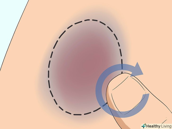 Легко помасажуйте область навколо синяка.великим пальцем легко помасажуйте зовнішній край удару. Чи не натискайте занадто сильно і не намагайтеся масажувати центр синяка, так як це у вас викличе лише біль. Масажуйте невеликими круговими рухами. Це активує лімфатичний процес, завдяки якому ваш організм сам почне позбавлятися від синяка.