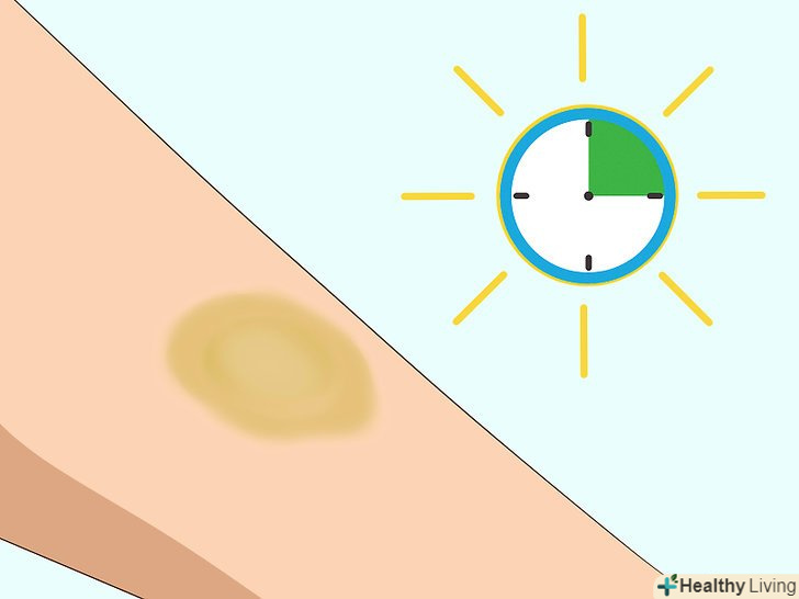 Виставте синяк на сонячне світло.якщо ви проведете 10-15 хвилин під прямими сонячними променями, ультрафіолетові промені почнуть руйнувати білірубін, через який синяк стає жовтим. Сонячне світло прискорить процес загоєння, і ваш синець зникне швидше