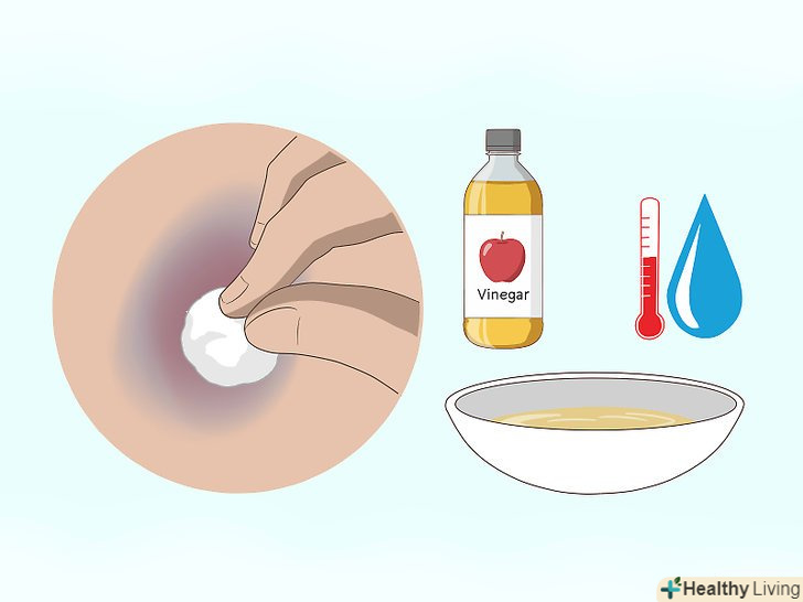 Втирайте в синяк Водний розчин оцту.розведіть оцет в теплій воді і потріть отриманим розчином місце удару. Оцет збільшує приплив крові до поверхні шкіри, завдяки чому синяк заживає швидше.
