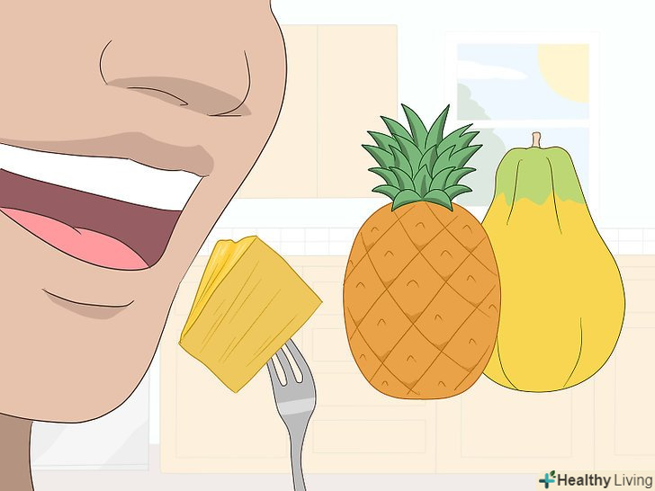 Їжте ананас або папайю.в ананасах і папайї міститься фермент під назвою бромелаїн. Він руйнує білок, який блокує кров і рідину в тканинах. Їжте ананаси, щоб засвоїти з них бромелаїн і допомогти організму позбутися від синяка.