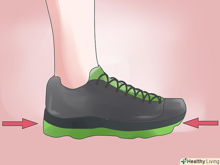 Взуття не повинна бути занадто тісною.після вибору бігового взуття, переконайтеся, що вони не сильно тиснуть. Взуття повинна сидіти на нозі так, щоб всередині по ширині і довжині залишалося невеликий простір, щоб стопа і пальці ніг могли поворухнутися. Якщо всередині буде мало місця, ваші пальці будуть згинатися і здавлюватися в процесі бігу, особливо якщо ви бігаєте по похилих поверхнях.- Також зверніть увагу на використання додаткових устілок для взуття, які будуть займати вільне місце, не даючи вашій нозі влізти в черевики! Обов'язково вставте устілки в приміряється взуття, перед тим як вирішити, що вона вам підходить.