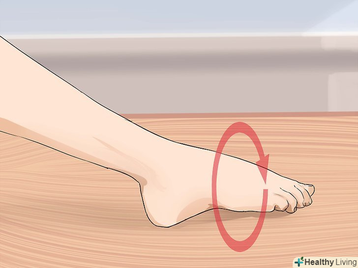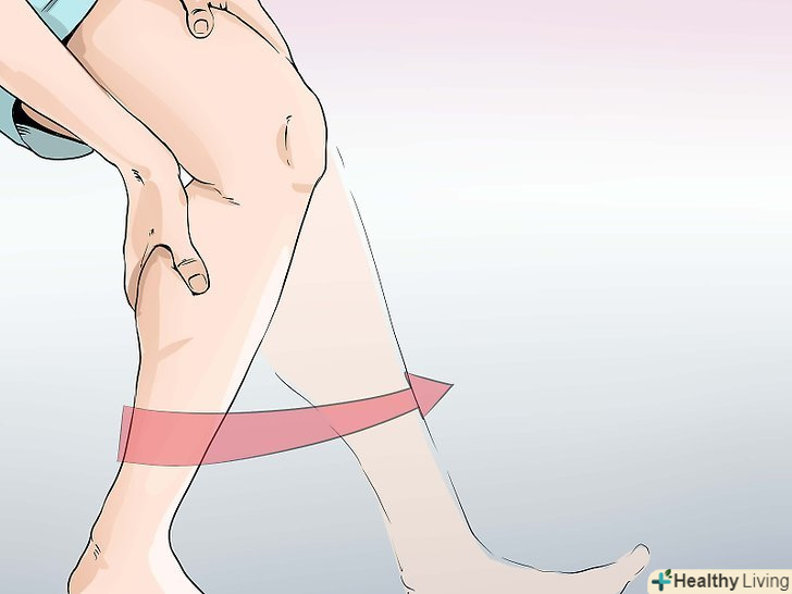 Злегка рухайте ногою.щоб нога швидше зажила, їй потрібен спокій, проте так суглоби можуть затекти, а кровообіг погіршитися. Щоб цього не сталося, злегка рухайте ногою.[30]- Спочатку посувайте пальцями на нозі, потім поводите ногою з боку в бік, вперед і назад.