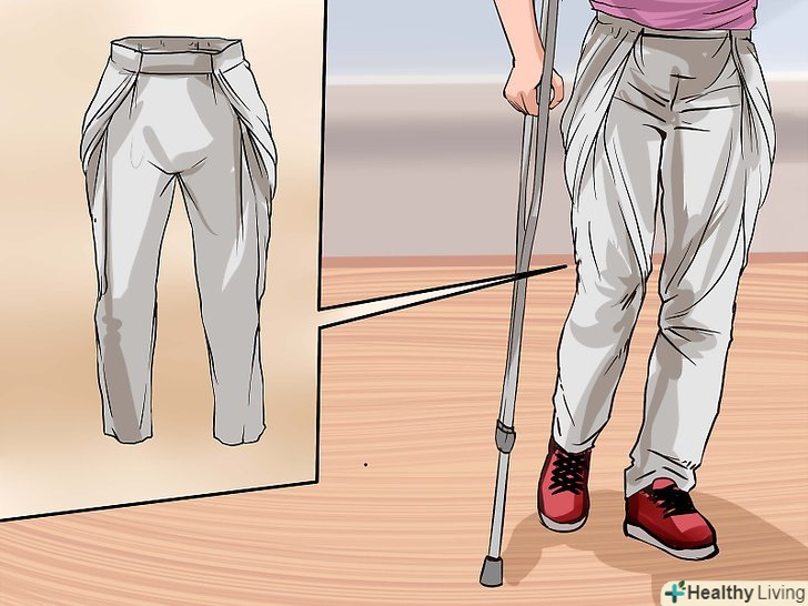 Носіть зручний одяг.при вивиху коліна вам буде незручно одягатися, особливо якщо ви носите штани. Вибирайте одяг, яку можна буде легко надіти і зняти і в якій вам буде комфортно.- Носіть просторі штани або шорти. Удома можна ходити і без штанів.