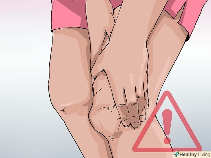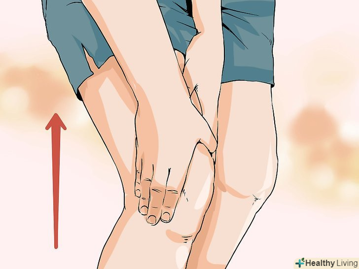 Оцініть ситуацію.якщо коліно пошкоджено сильно або вам дуже боляче, викличте швидку допомогу або відправляйтеся в приймальне відділення лікарні. Якщо правильно оцінити стан коліна і вчасно почати лікування, можна не допустити погіршення стану і знизити хворобливі відчуття.- Коліно може бути вивихнуто, якщо воно виглядає деформованим або не так, як зазвичай.[3]