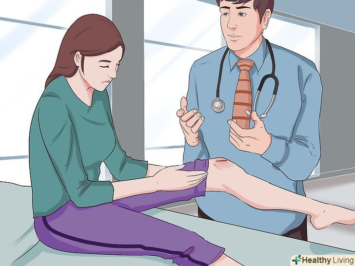 Повторно відвідайте лікаря після загоєння рани.нерозчинні шви і скоби зазвичай знімають через 5-14 днів після накладення. Після зняття швів не забувайте захищати травмоване місце від сонця за допомогою сонцезахисного засобу або просто ховайте шрам під одягом. Запитайте рекомендації лікаря щодо лосьйонів і кремів, які найкращим чином допоможуть вам в подальшому загоєнні шраму.[14]