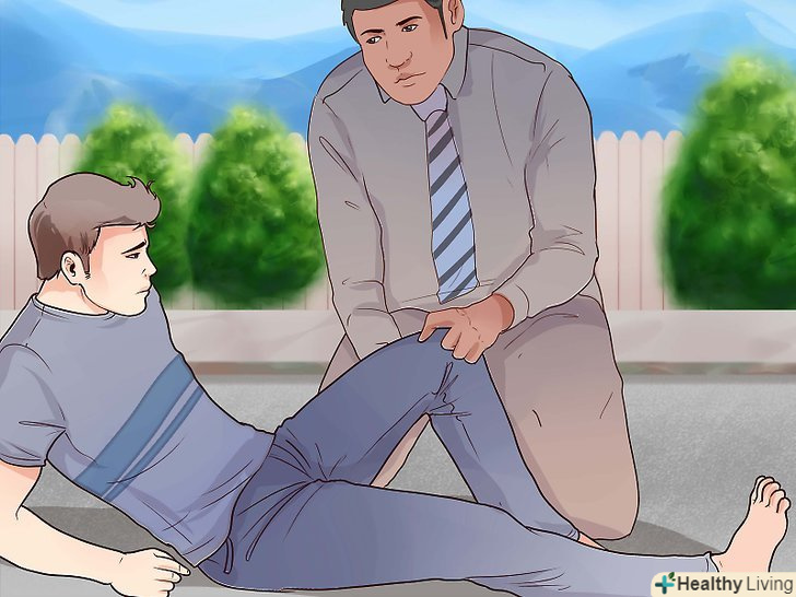 Оцініть ступінь наявної небезпеки для життя.якщо з рани на нозі або руці йде рясна кровотеча, попросіть потерпілого підняти травмовану кінцівку. Тримайте її в такому положенні до зупинки кровотечі.- Шок також може бути небезпечний для життя. Якщо потерпілий знаходиться в стані шоку, постарайтеся зігріти його і допоможіть максимально можливо розслабитися.