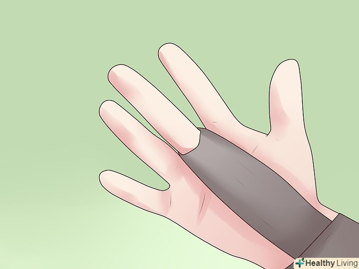 Робіть вправи, щоб розробляти рухливість пальця.при розтягуванні пальця, діапазон його рухів, швидше за все, буде обмеженим. Для того щоб відновити діапазон рухів, вам потрібно виконувати деякі вправи для пальця. До таких вправ відносяться:- Переміщення великого пальця у напрямку від всіх основних пальців. Тримайте великий палець якнайдалі від інших протягом 5 секунд, потім поверніть його назад в нормальне положення.
