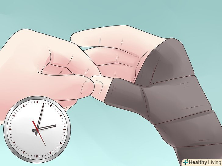 - Прикладіть лід до свого пальця, щоб допомогти зменшити біль і набряк. Пакетом з льодом може служити упаковка льоду або заморожених овочів. Переконайтеся, що ви загорнули пакет з льодом в ганчірочку, так, щоб він не контактував безпосередньо зі шкірою. Тримайте пакет з льодом на пальці з інтервалами в 20 хвилин.