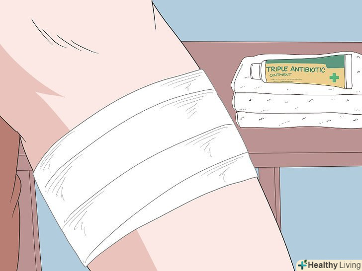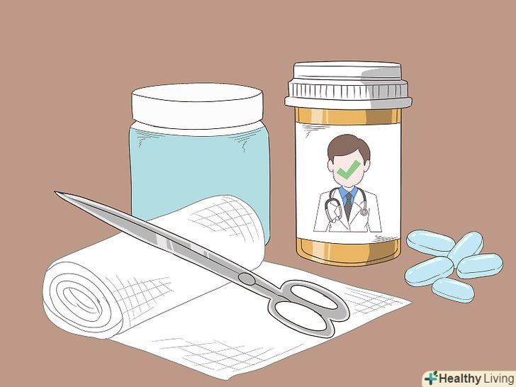Дізнайтеся у лікаря щодо медикаментів і перев'язок.наприклад, лікар може виписати вам антибіотики, щоб прискорити загоєння рани. Він може також порекомендувати перев'язувати рану певним способом, тому будьте уважні при відвідуванні лікаря і запам'ятовуйте його вказівки.[10]- При деяких видах ран лікар може призначити пероральні антибіотики.