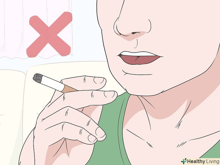 Киньте палитиПід час загоєння рани.краще взагалі відмовитися від цієї шкідливої звички. Однак якщо ви не в змозі зробити це, постарайтеся кинути палити хоча б на час загоєння рани. Куріння уповільнює природні процеси загоєння, і для нього потрібно набагато більше часу.[24]- Обговоріть способи відмовитися від куріння зі своїм лікарем. Наприклад, він може порадити використовувати жувальну гумку, пластир або таблетки з нікотином.