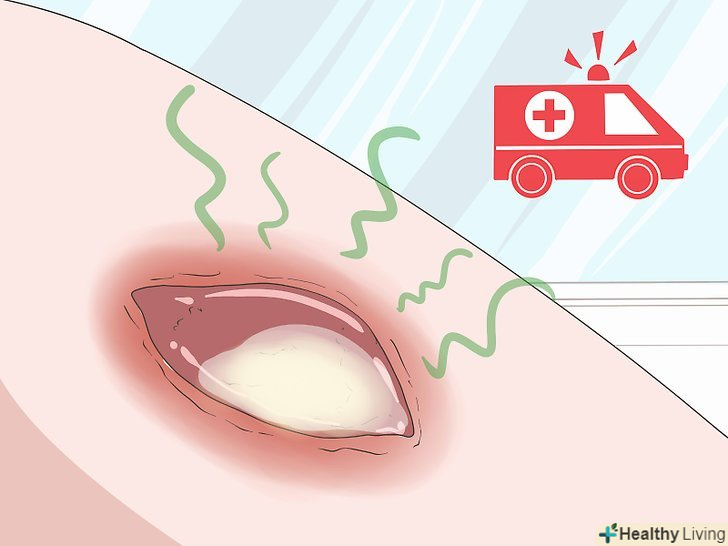 Відвідайте лікаря при каламутних виділеннях з рани, що мають неприємний запах.деякі рани виділяють рідину, наприклад утворилися на місці опіку пухирі, які потім лопаються. Однак нормальні виділення, як правило, не мають запаху і прозорі, а не каламутні.[7]