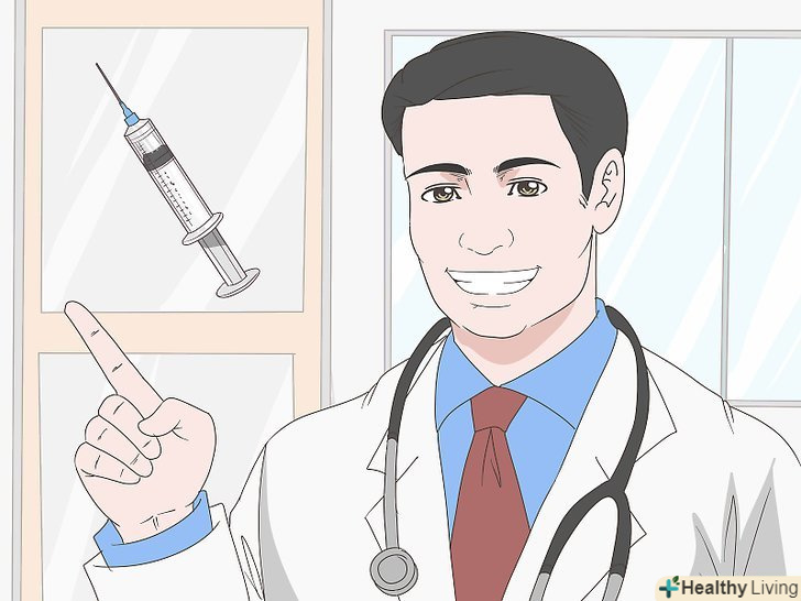 Порадьтеся з лікарем, чи необхідна Вам щеплення від правця.через рану в організм можуть проникнути бактерії, в тому числі ті, які викликають правець. Якщо ви не отримували щеплення від правця протягом останніх 5 років, лікар може призначити її, щоб запобігти інфекції.[9]- Якщо ви не пам'ятаєте, коли проходили вакцинацію від правця останній раз, ймовірно, лікар порадить про всяк випадок зробити щеплення.