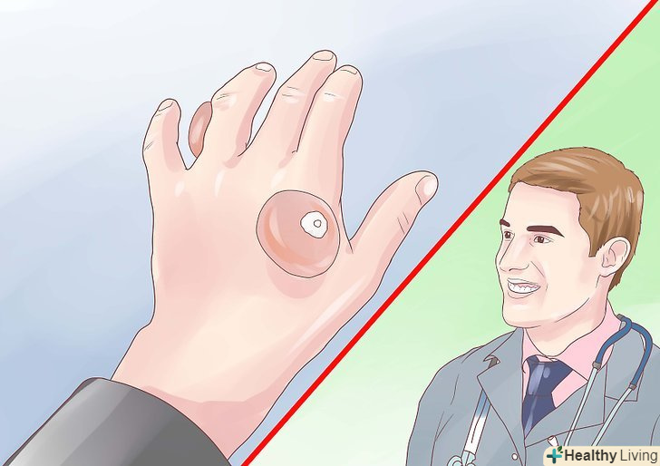 Ідіть до лікаря, якщо шкіра обпалена більше, ніж на 6 см. якщо ваш опік більше 6 см в діаметрі, то це дуже серйозно, особливо якщо він супроводжується набряком, болем, і появою пухирів. [6]