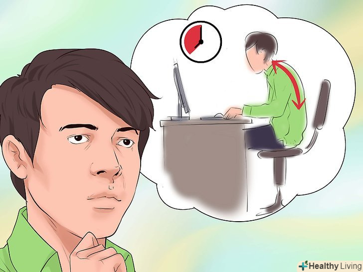 Зверніть увагу на свою поставу і спосіб підйому з ліжка.Слідкуйте за своєю поставою, коли встаєте з ліжка і приступаєте до щоденних занять. Тримайте спину прямо, коли сидите, робіть часті перерви, вставайте і походжайте кожні 30-60 хвилин. Правильно піднімайтеся з ліжка вранці. Спочатку ляжте на спину і зігніть ноги в колінах так, щоб ступні залишалися на ліжку. Потім перекотіться на бік і повільно звісьте ноги з ліжка. У такому положенні зіпріться однією рукою об ліжко, не поспішаючи підніміться і сядьте. При цьому допомагайте собі ногами. Якщо ви піднімаєте якийсь масивний предмет, намагайтеся весь час тримати його біля свого тіла.