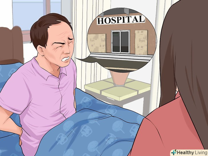 Пам'ятайте про критичні ознаки, при яких слід негайно вдатися до медичної допомоги.якщо ви відчуваєте настільки сильний біль, що не можете ходити або важко відчуваєте свої ноги, попросіть кого-небудь доставити вас до лікарні. Не намагайтеся дістатися туди самостійно: якщо ваш стан погіршиться, ви можете опинитися в небезпечному становищі. Негайна медична допомога може знадобитися також при наступних симптомах:[2]- Оніміння в тазі і попереку, а також в оточуючих їх ділянках.
