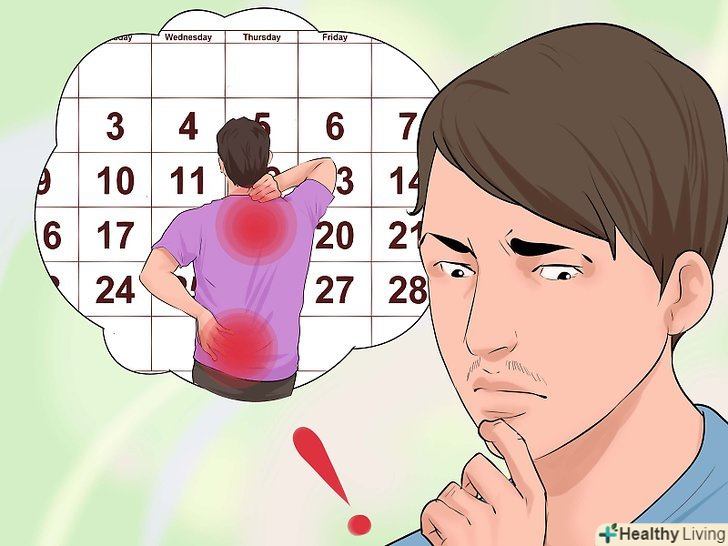 - Оцініть свій біль за десятибальною шкалою, де 10 відповідає найсильнішій болю, яку ви коли-небудь відчували. Через кілька днів знову оцініть силу болю. Можна повторювати цю оцінку через кожні 3-4 дні, щоб з'ясувати, чи покращується ваш стан. Дослідження показують, що цей спосіб добре підходить для того щоб відстежувати свої больові відчуття.[1]