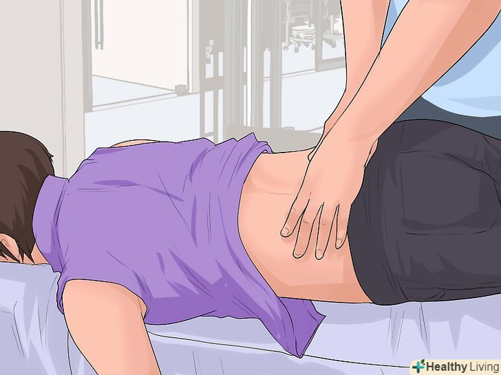 Скористайтеся фізіотерапією та / або масажем.[6] фізіотерапія та / або масаж прискорять відновлення і знизять біль, особливо в тому випадку, якщо травма пов'язана з пошкодженням м'язів спини. Можливо, Вам оплатять цей вид лікування в тому випадку, якщо ви травмувалися на робочому місці.