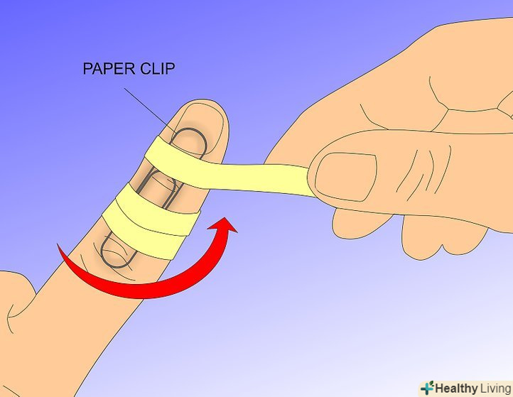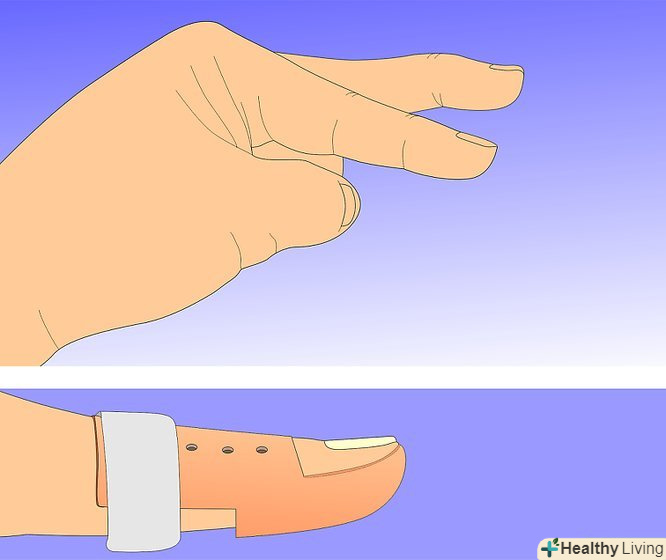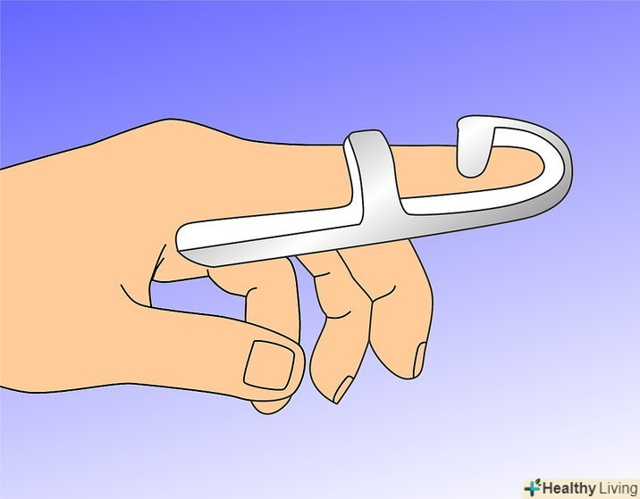 Тримайте палець прямо.ви можете зробити тимчасову шину з великої скріпки для паперу, і скотча, примотавши її до пальця. Деякі люди вдало застосовували палички від ескімо і пластикові ложки для тимчасового утримання пальця прямо, поки вони не змогли придбати необхідну шину.