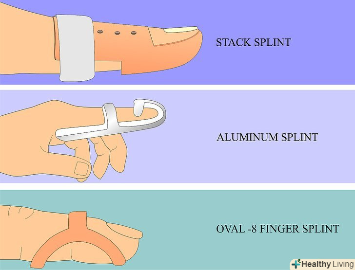 Стек шини.ці шини виготовляють із пластику. Вони можуть легко митися, але іноді не зовсім підходять за розміром.- Алюмінієва шина з підкладкою з піни. Ці шини залишають подушечку пальця вільною, що полегшить друкування. Як правило, вони більш зручні і дієві, ніж стек шини, але піна може намокнути і почати погано пахнути.