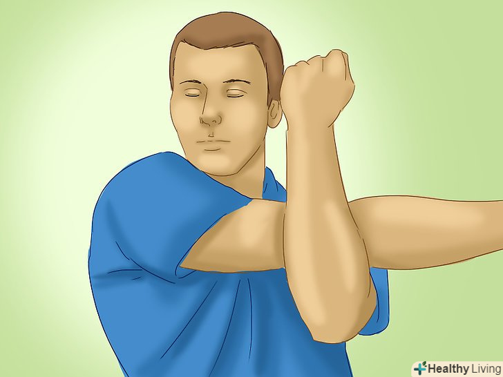Спробуйте виконувати легкі розтягуючі вправи для плеча.якщо травма плечане є серйозною іне супроводжується гострою, колючої або прострілює болем, приблизно через день повного спокою спробуйте виконувати легкі розтягують вправи. Хоча розтяжка не рекомендується при вивихах і серйозних розтягненнях плеча, при менш серйозних травмах легкі розтягують вправи допомагають зняти м'язову напругу, стимулювати кровообіг і підвищити гнучкість.[6] утримуйте розтяжку протягом приблизно 30 секунд і виконуйте її хоча б три рази на день, поки біль не вщухне.- Легкі рухові і розтягуючі вправи знижують ризик утворення рубцевої тканини, розвитку хронічної ригідності і втрати рухливості плеча.