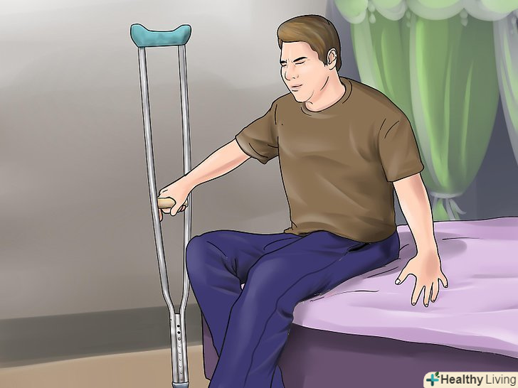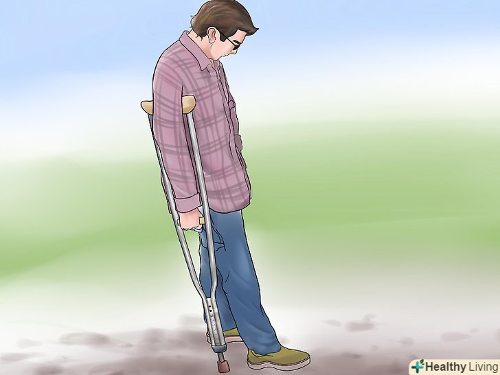Навчіться ходити з милицями.поставте милиці на відстані 15-30 см перед собою, спираючись на них, спробуйте зробити крок вперед.