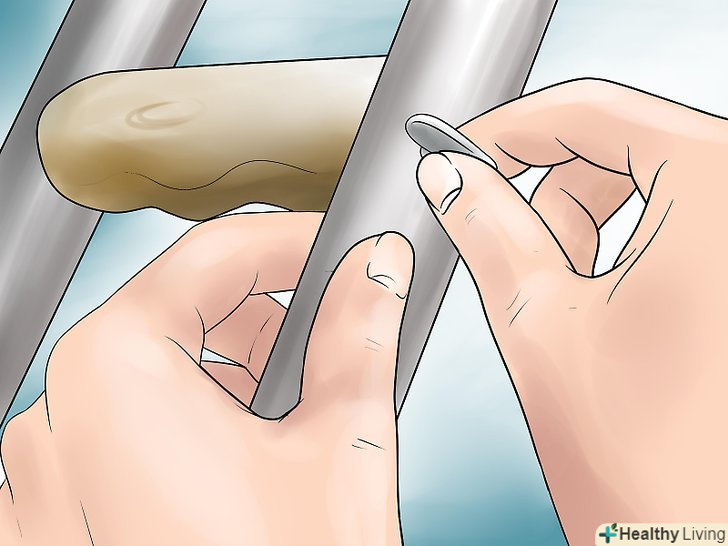 Відрегулюйте милицю так, щоб пахву і майданчик милиці розділяло хоча б 5-10 см. багато людей роблять помилку, думаючи, що милиця повинен точнісінько впиратися в пахвову западину. Насправді, там повинно бути трохи простору, щоб забезпечити можливість руху. Милиці призначені для того, щоб злегка спиратися на них руками, а не всім тілом.- Якщо на милицях немає насічки, щоб звільнити місце між пахвою і милицею, відрегулюйте їх вручну. Чим менше відстань між пахвовій западиною і милицею, тим вище ймовірність вивиху плечового суглоба.