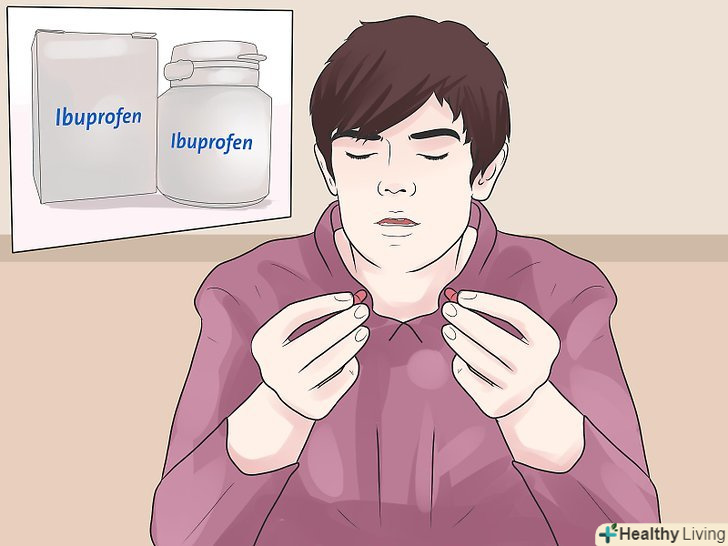 Прийміть НПЗП.нестероїдні протизапальні препарати (НПЗП) допомагають як знизити набряклість, так і позбутися від болю, викликаної травмою щиколотки. Найбільш поширені НПЗП, що відпускаються без рецепта - це ібупрофен і напроксен.[7]- Якщо у вас проблеми з серцем, підвищений кров'яний тиск, захворювання нирок або діабет, то перед тим, як приймати НПЗП, проконсультуйтеся з лікарем.
