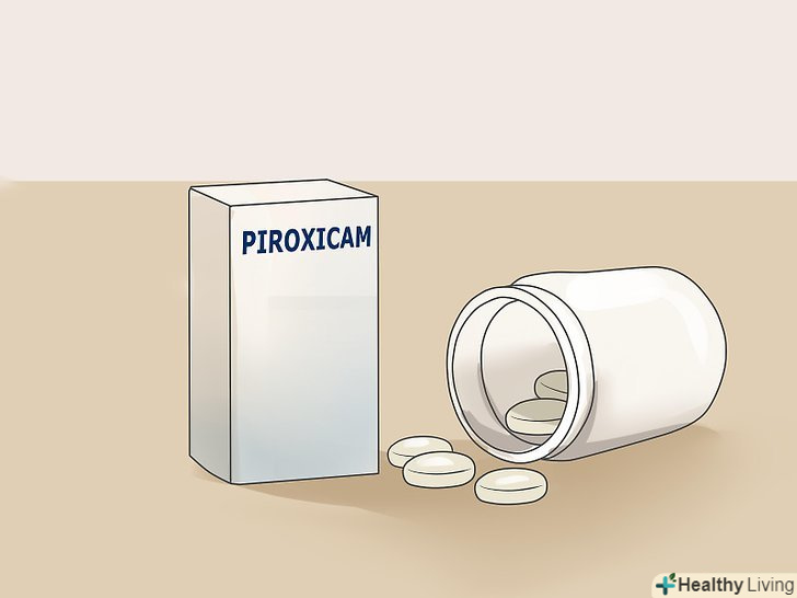 Приймайте піроксикам. Піроксикам зупиняє вироблення простагландину. Його випускають у формі таблеток для сублінгвального застосування. Діюча речовина надходить прямо в кров, щоб знизити набряклість.[9]- Рекомендована доза-20 мг один раз на день. Для прийому всередину або сублінгвально. Приймайте після їжі, щоб знизити ймовірність появи шлункових болів.
