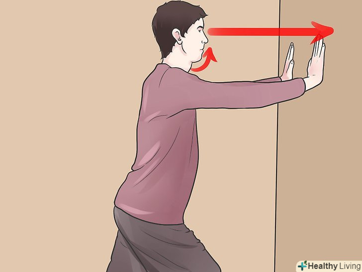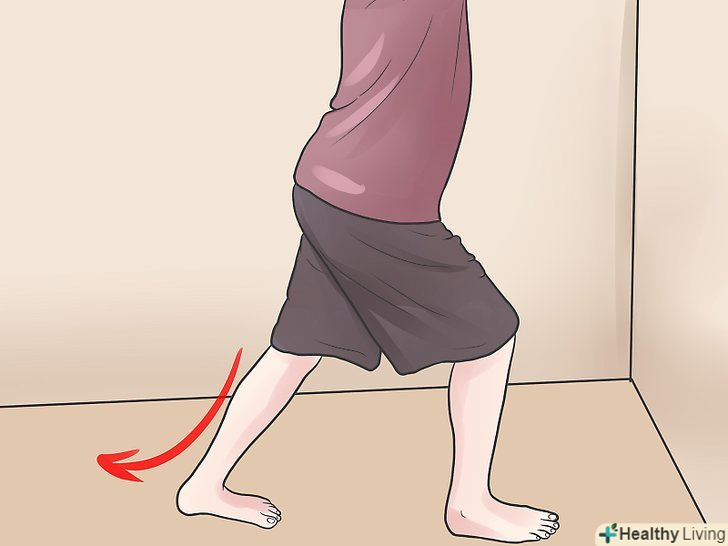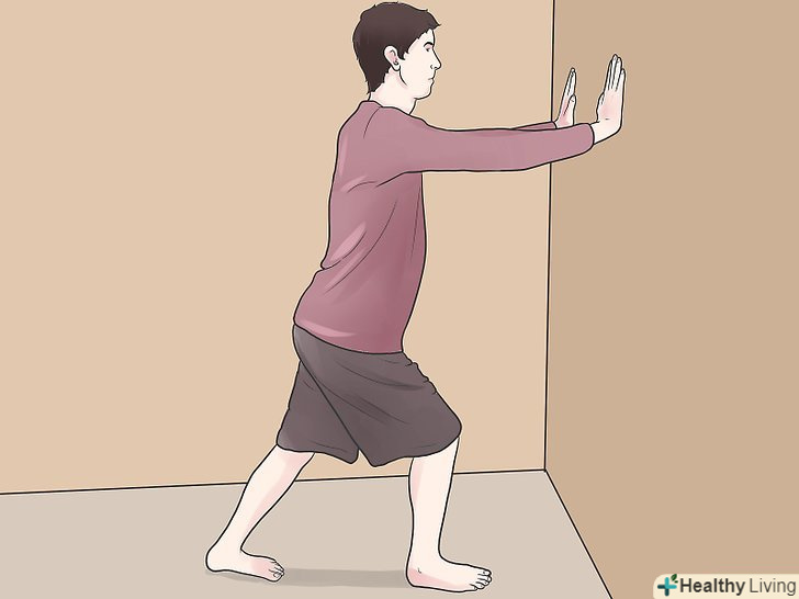 Встане на відстані витягнутої руки від стіни і зіпріться об неї обома руками.як правило пробувати виконувати цю вправу можна через три дні після травми щиколотки або близько того. Натисніть на стіну, опустивши лопатки і направивши їх назад (так ви напружите ваше тулуб і сідниці).- Залишайтеся в такому положенні протягом всього вправи, не 'шахраюйте' і не допомагайте травмованої щиколотці.