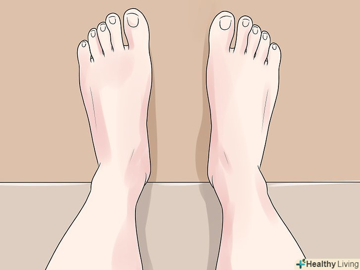Підніміть здорову ногу.постійте на травмованій нозі. При цьому і п'ята, і носок повинні одночасно стосуватися статі. Іноді ви будете похитуватися, але ви повинні намагатися зберігати випрямленнле положення.[10]- Зберігайте таке положення протягом 30 секунд. Швидше за все ви відчуєте невеликий дискомфорт, але якщо ви почнете відчувати гострий біль, то виконання цієї вправи потрібно припиняти.