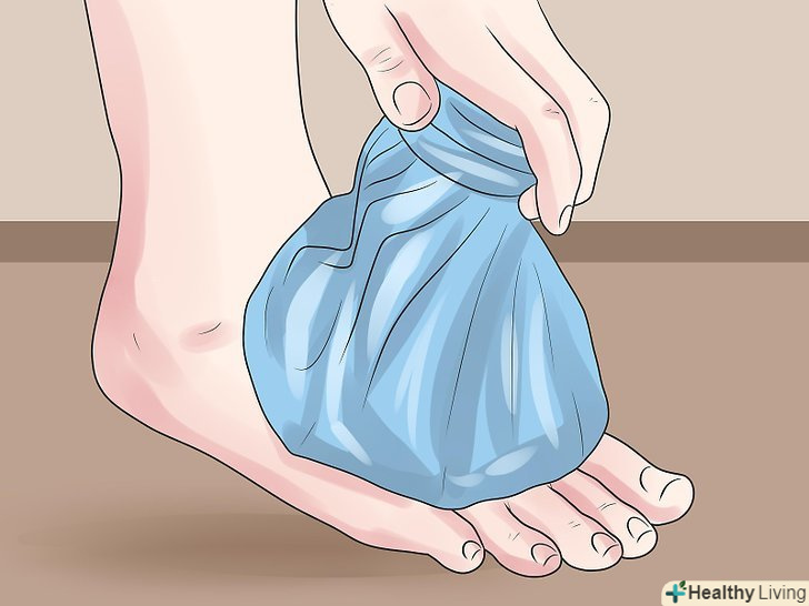 Щоб зменшити набряк і послабити біль, прикладайте до щиколоткилід на 20-ти хвилинні відрізки часу.прикладаючи до щиколотки лід, ви зменшуєте приплив крові до даної частини тіла, тому набряк спаде швидше. Прикладання льоду також допоможе вам впоратися з болем. Перш ніж притискати лід або пакет з льодом до шкіри, оберніть його рушником.- Ви можете зробити пакет з льодом самостійно, змішавши одну частину медичного спирту з однією частиною води. Зберігайте розчин у морозилці, наливши його в пакет Ziploc (або подібний).
