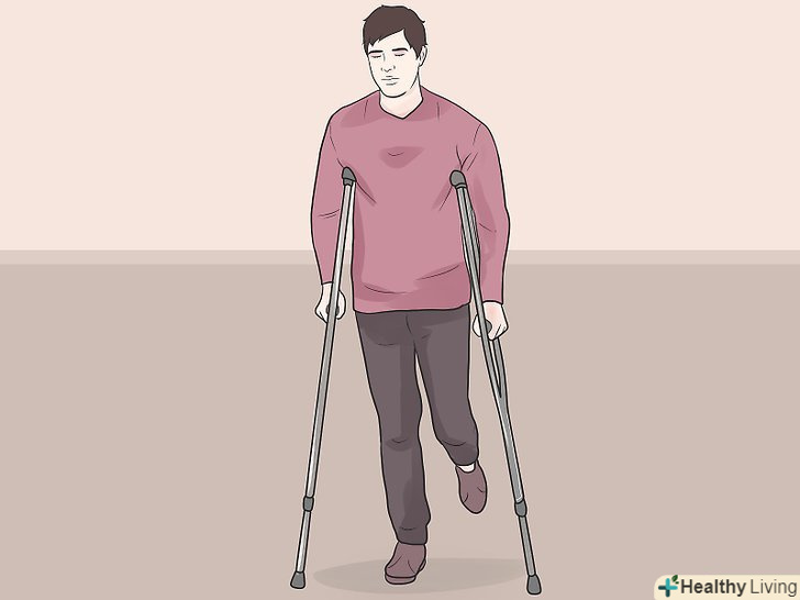 Підтримуйте > щиколотку, поки вона не одужала.виключивши тиск на щиколотку, намагаючись не стояти на ній, ви допоможете їй одужати швидше. Ви можете використовувати милиці, якщо вони є у вас під рукою. Пам'ятайте, що вам потрібно підтримувати вашу щиколотку, коли ви піднімаєтеся або спускаєтеся по сходах.- Піднімаючись по сходах, ви повинні робити перший крок здоровою ногою, а потім - хворий. Таким чином все навантаження від вашої ваги буде припадати на здорову ногу.
