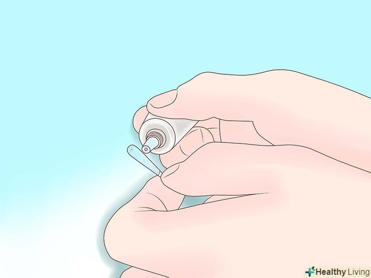 Використовуйте пінцет, щоб витягнути скло.обережно підчепіть край осколка і потягніть, щоб звільнити його з шарів епідермісу. Можливо, вам доведеться злегка здавити шкіру навколо осколка, видавлюючи скло назовні, або, навпаки, розтягнути краї ранки, щоб зачепити осколок пінцетом. Однак не варто вводити гострі краї пінцета глибоко в рану або розколупати шкіру в місці пошкодження — так ви тільки погіршите ситуацію і заподієте собі біль.- Якщо у вас не виходить видалити скло, зверніться в травмпункт або в поліклініку, щоб хірург видалив застряглий осколок. Якщо осколок застряг занадто глибоко, вам не вдасться витягти його самостійно — ви тільки погіршите ситуацію, сильніше травмуєте ногу або занесете в рану інфекцію.[7]