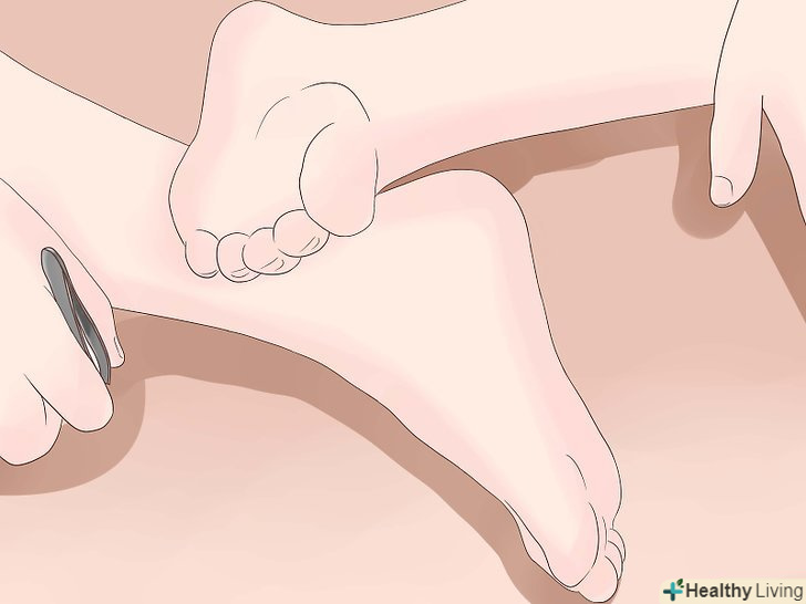Нанесіть касторове масло.касторова олія є прекрасним домашнім засобом, що допомагає позбутися від невеликих осколків скла, що застрягли в товщі шкіри-воно сприяє переміщенню осколка ближче до поверхні. Гарненько змочіть марлеву серветку або ватний диск в касторовій олії і прикладіть до ступні над тим місцем, де застрягло скло. Вам потрібно буде почекати деякий час, щоб масло проникло в шари шкіри: чим довше ви будете тримати серветку або диск з маслом, тим ближче до поверхні переміститься осколок.- Незважаючи на те що не існує однозначних наукових доказів, які доводять ефективність касторової олії, цей метод цілком безпечний. Вважається, що масло розм'якшує верхні шари шкіри, що полегшує подальше вилучення осколка.[2]