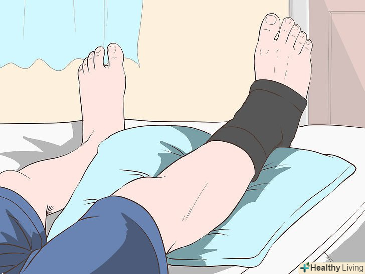 Не навантажуйте щиколотку, поки не спаде набряк.намагайтеся якомога рідше ступати на пошкоджену ногу до тих пір, поки не зменшиться набряк і не вщухне біль. Не спирайтеся на травмовану кісточку. У разі необхідності користуйтеся милицями, які допоможуть розвантажити пошкоджену ногу і утримати рівновагу при ходьбі.[3]- Можна також використовувати супінатор (спеціальну устілку). Це підвищить стійкість і допоможе зняти набряк після травми. Супінатор можна носити від 2 до 6 тижнів, в залежності від ступеня розтягування.