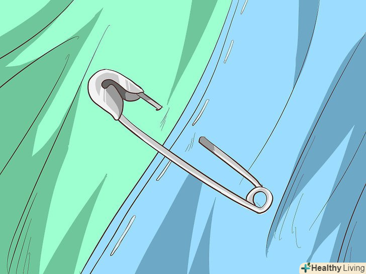 - Якщо у вас під рукою є англійські шпильки, ви можете спробувати "закріпити" тканину одягу з рукавами навколо свого ліктя як тимчасову точку опори для перев'язі, як було описано в методі вище.