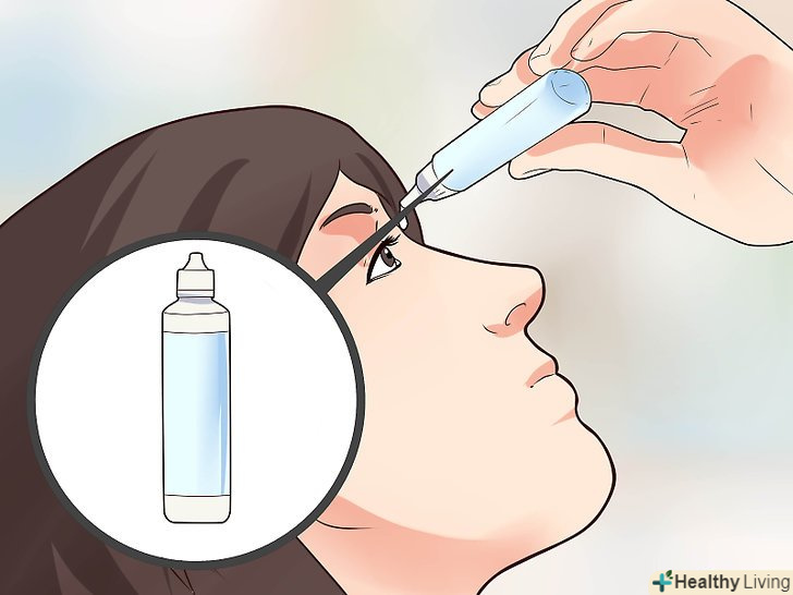 Промийте очі розчином солей( фізіологічний розчином), чистою водою або стерильними рідинами.промийте очі в тому випадку, якщо в них потрапили краплі крові або вміст шприца.