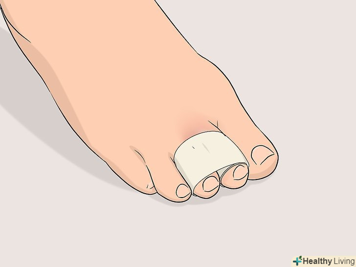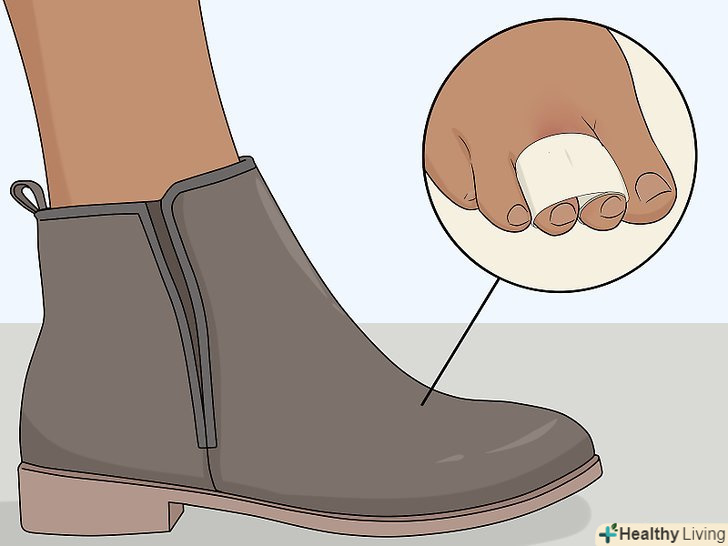Захистіть пальці ніг від подальших пошкоджень.після травми палець ще більш схильний до пошкоджень. Щоб уникнути їх, носіть зручне надійне взуття і продовжуйте бинтувати пальці протягом 2-6 тижнів. Виберіть закриває пальці і досить просторе взуття з урахуванням перев'язки і можливого набряку пальця. Краще використовувати жорстку і стійку, а не м'яке взуття з тонкою підошвою. Не носіть взуття на високих підборах як мінімум кілька місяців після травми, так як вона сильно обмежує пальці і перешкоджає їх нормальному кровопостачанню.[10]- При сильному набряку пальця можна надягати підтримують сандалі з відкритим носком, однак пам'ятайте, що вони не забезпечують ніякого захисту, тому носіть їх з обережністю.